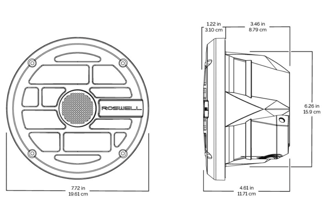 Roswell R Series 7.7" Speakers maximize the power and range of our R Series family to deliver the signature sound and durability of Roswell Marine Audio to more places than ever before. As the Roswell revolution continues to redefine audio experiences, the call for our sound in every situation has been answered. Customizable RGB LED lighting is seamlessly integrated to make the music come to life and set your perfect scene. This popular size brings new upgrade opportunities to any application on the water and beyond in a direct replacement for existing 7.7” speakers.